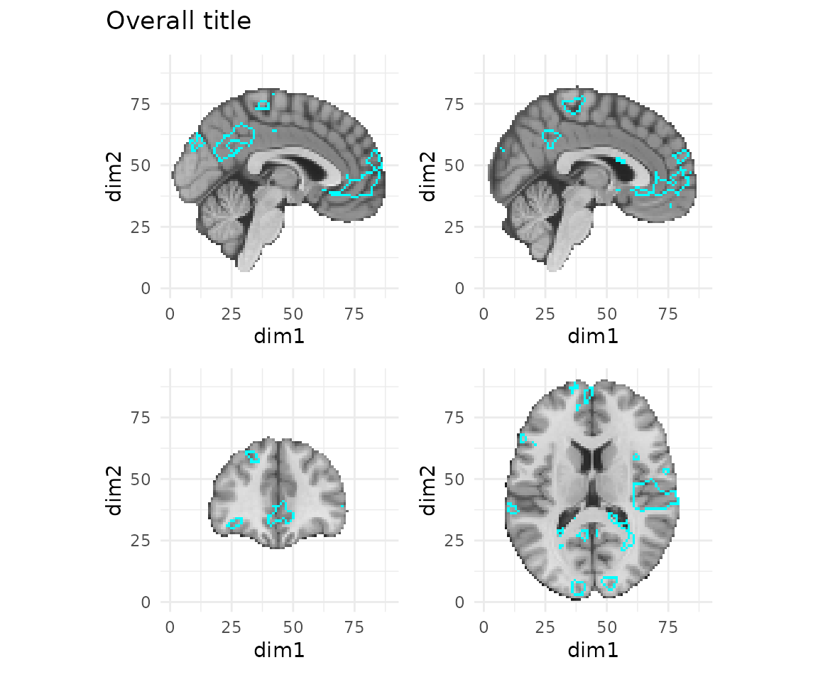 rendered_gg <- render(brain_plot) + plot_annotation(title = "Overall")Another point is that by keeping your plots as ggbrain